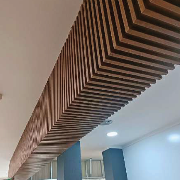 Além da componente visual, o perfil ripado contribui para o controlo acústico e melhoria do conforto sonoro, sendo particularmente indicado para espaços de uso público, escritórios, habitações e áreas comerciais. A montagem modular permite uma instalação rápida e precisa, com fixação oculta e possibilidade de integração com sistemas de iluminação ou ventilação.