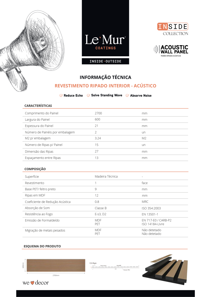 Os acessórios de remate Le’mur foram concebidos para garantir um acabamento perfeito nos nossos painéis Ripados Acústicos Inside. Cada elemento assegura transições suaves, continuidade estética e um resultado visual harmonioso, valorizando o design e a funcionalidade do revestimento.